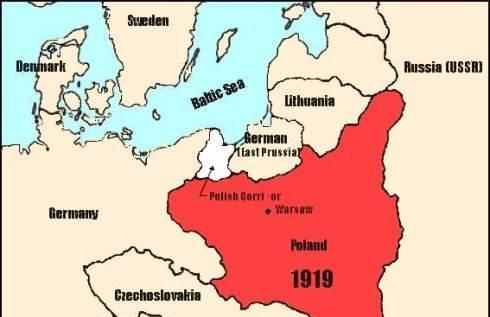 “波蘭走廊”是德國在1919年根據《凡爾賽條約》被迫割讓給波蘭的一塊狹長領土,現在屬于波蘭領土,也被稱為“但澤走廊”。其位于東普魯士和西普魯士間、沿維斯瓦河下流西岸,寬約80公里,波蘭將此作為通往波羅的海的出口,并將格但斯克港,劃為“但澤自由市”,歸國際共管,這導致了德國的領土被劃分為不連接的兩部分。