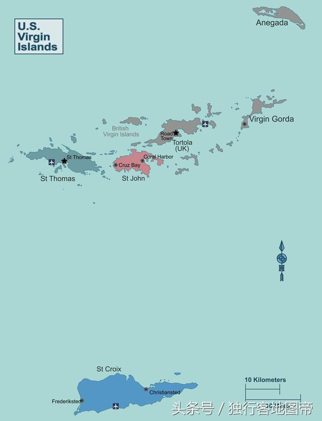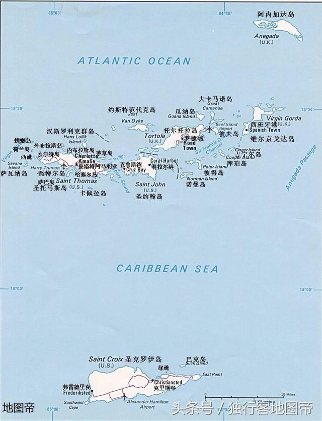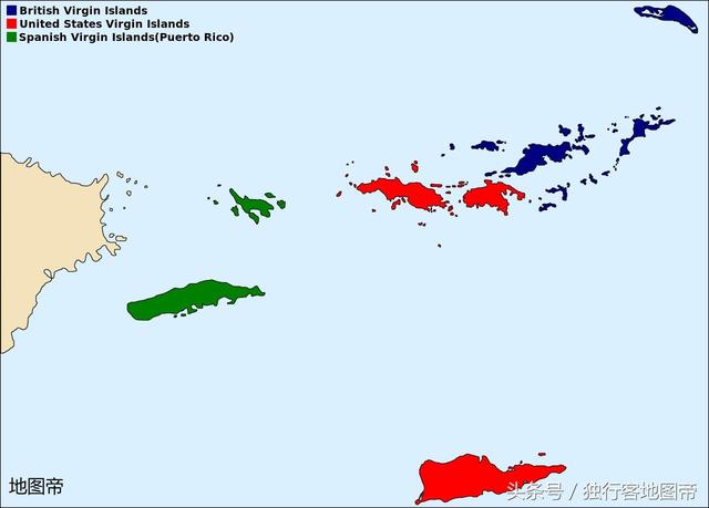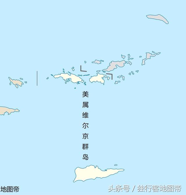 地圖上有兩個維爾京群島,北邊是英屬維爾京群島,南邊是美屬維爾京群島。