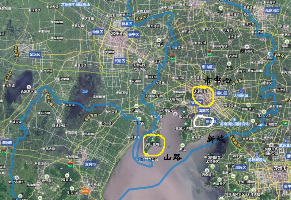 無錫市一個非常特別的城市,首先他的牌照是蘇B,而蘇州卻是蘇E。從牌照上說,無錫在江蘇的地位是非常高的,我們先來上一張無錫的地圖來快速了解一下這個城市