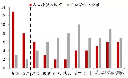 1、流動(dòng)大方向:東遷與南下,向核心集中。2018年我國東部10個(gè)省市中有7個(gè)為人口凈流入地區(qū),南方省份凈流入人口也高達(dá)168.5萬。從省份來看,廣東、浙江、安徽人口凈流入最多,而北京人口凈流出排全國第一。從省內(nèi)情況看,向省會(huì)和“雙子星”等核心城市集中非常明顯。