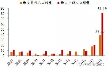 注:2017年及以前的人口增量采用舊口徑(不含西咸新區(qū)咸陽片區(qū)),2018年增量調(diào)整為新口徑(2018年新口徑-2017年新口徑)。