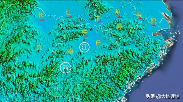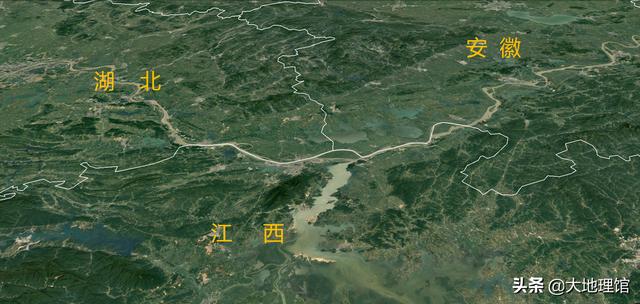 北部邊界,兩翼是起伏的丘陵,中間突然降低的區域,是一片浩浩湯湯的「江湖」,江是長江、湖為鄱陽,中國最大的江與最大的湖在此相聚,好不壯觀!