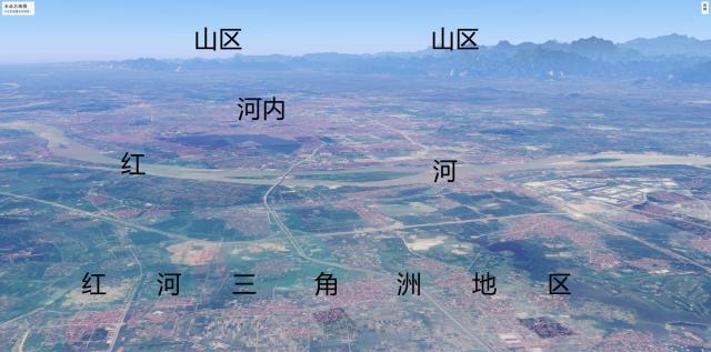 越南占據(jù)了中南半島上最好的兩塊土地,一塊是胡志明市所在的湄公河三角洲,另一塊就是其北部的紅河三角洲。在距離紅河入??诖蠹s100公里的河邊分布著三角洲上最大的城市-河內(nèi)市,它也是越南的首都。從圖中可以看到,遠(yuǎn)處的山脈若隱若現(xiàn),中間的紅河河谷地帶平平坦坦,這足以證明了該地區(qū)是一個(gè)典型的河流沖積平原,土地肥沃,是越南重要的水稻產(chǎn)區(qū)。