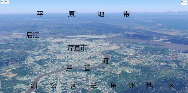 最后這個(gè)城市可能大家都很少聽到,但是一說起九龍江平原,稍微了解越南人文地理的朋友就知道了(越南南部最重要的產(chǎn)糧區(qū))。它就是九龍江平原上最大的城市芹苴市(有60萬左右的人口)。從圖上可以看到它的城市分散在綠色的農(nóng)田之上,這也說明了該地區(qū)城市的發(fā)展水平不是很高,是典型的農(nóng)業(yè)區(qū)。肥沃的土地造就了這個(gè)越南的“稻米中心”。