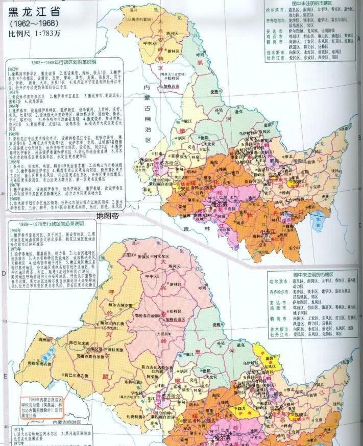 圖-1962年-1968年以及1969年-1978年黑龍江省區(qū)劃沿革