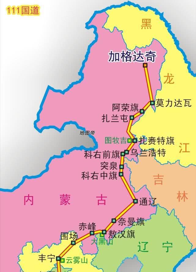 圖- 111國道路線圖,北起點加格達(dá)奇