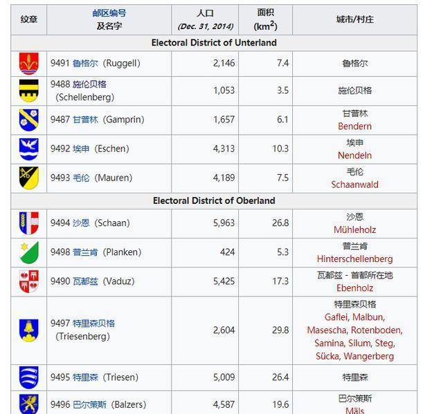 下面就是列支敦士登的市鎮(zhèn)列表,全國共包括了11個市鎮(zhèn)。