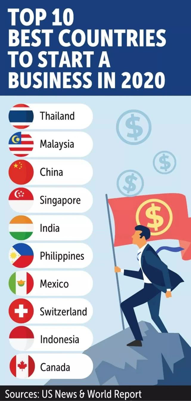 近日,《美國新聞與世界報道》發布了“2020年全球最佳創業國家”排名,在此次被認為是最適合創業的國家名單前十名中,亞洲國家占據了主導地位!其中,泰國連續四年蟬聯全球排名第一。