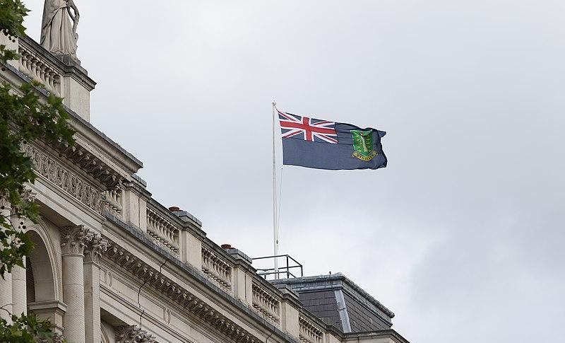 ▲英國(guó)倫敦政府機(jī)構(gòu)建筑物上飄揚(yáng)的英屬維京群島旗幟