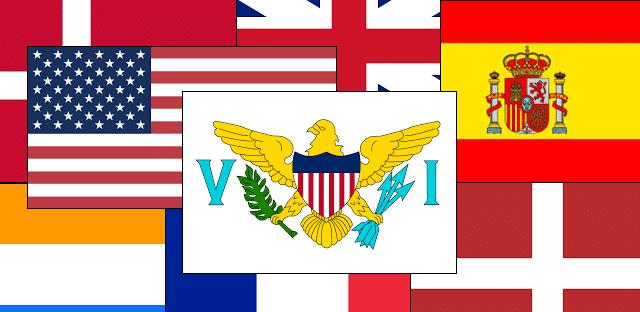 ▲此圖最上面為美屬維京群島旗,下面為曾經(jīng)或現(xiàn)在仍然占領(lǐng)該群島的各國(guó)國(guó)旗,其中左下角為當(dāng)時(shí)荷蘭王國(guó)國(guó)旗