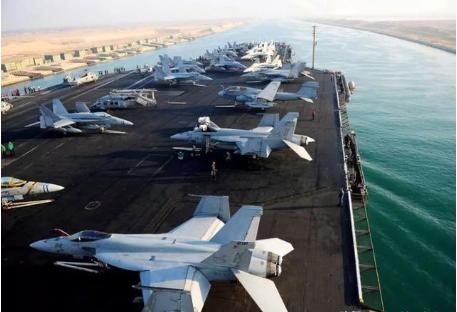(2017年3月10日美國海軍布什號航空母艦通過蘇伊士運河。)