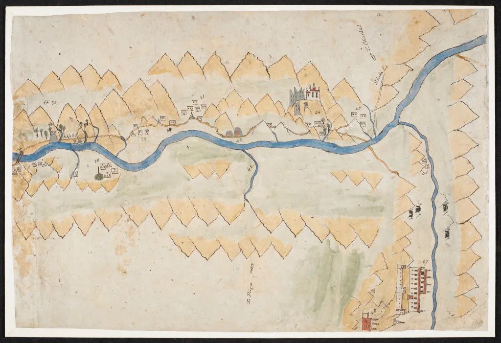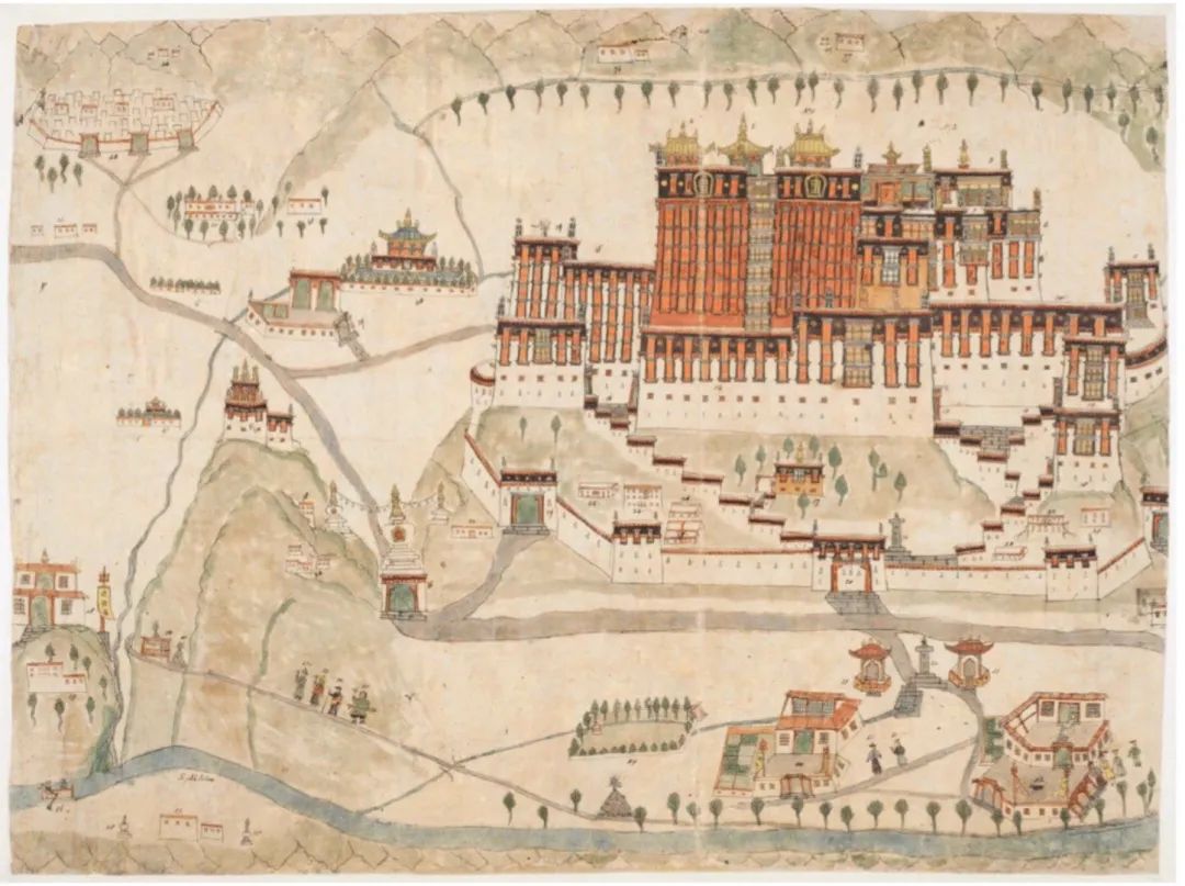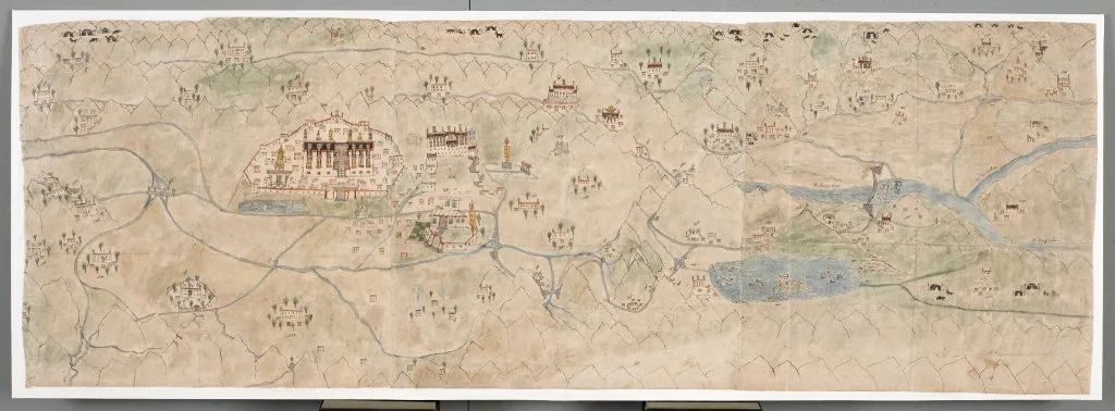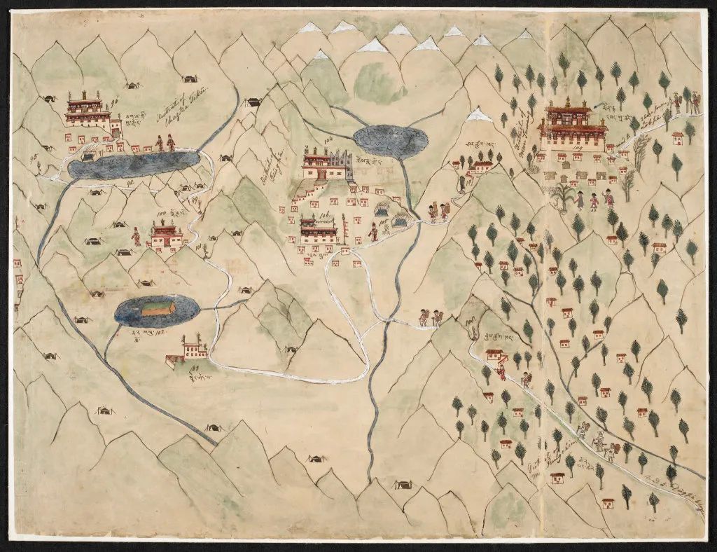 在倫敦的大英圖書館內收藏有這么一張珍貴的地圖,與其說是一張,其實是一套圖集,一套手繪的西藏彩色圖片地圖。