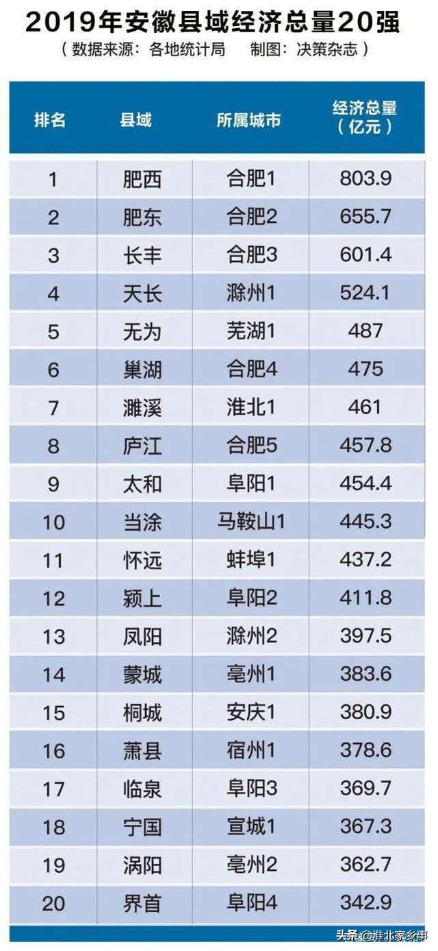 上個月,由于疫情原因遲遲而來的安徽省2019年各縣GDP數據出爐,20強名單也呈現出來。合肥三縣毫無疑問前三名。