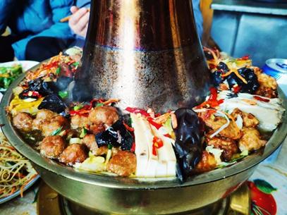 除了麥積山石窟的別具匠心,天水的美食也獨具一格。天水人對面食的熱愛自然與西安人如出一轍——遍地是大大小小的面館,由漿水面中的漿水衍生出來的漿水暖鍋是天水的特色地方菜。以漿水為湯,加入夾板肉,丸子,水燒肉配上金針菇、小白菜、香菜、西蘭花等蔬菜,加入秘制調料,以銅鍋烹煮而成,正好應證了天水一句老話"窮配富"。