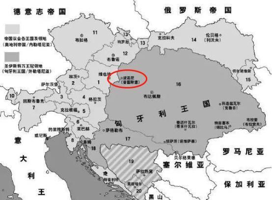 ▲奧匈帝國分布,其中波佐尼(普雷斯堡)劃給匈牙利王國