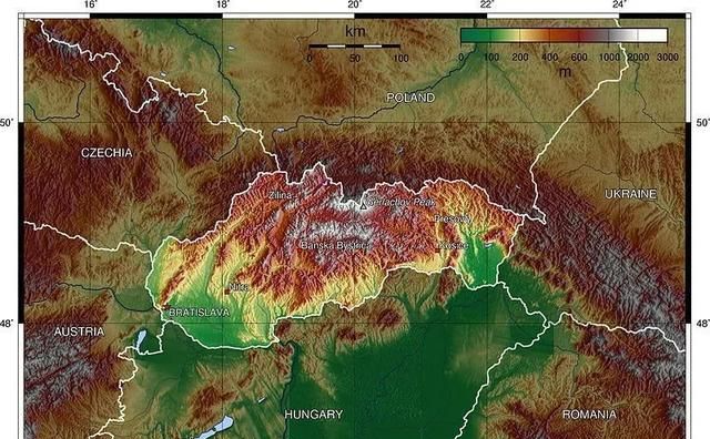 ▲斯洛伐克地形圖,其中西部和東南部為平原