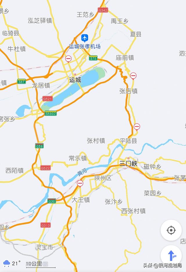 從地圖上看,山西和河南在黃河兩岸交界處坐落著兩座城市,黃河北邊的是山西省運城市,黃河南邊的是河南省三門峽市。