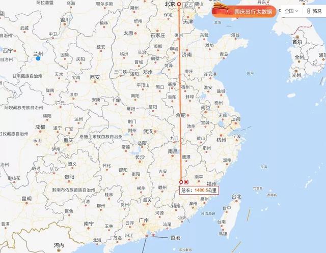 從北京向南出發(fā),1480公里的直線距離可以到達(dá)江西省與福建省的交界處。