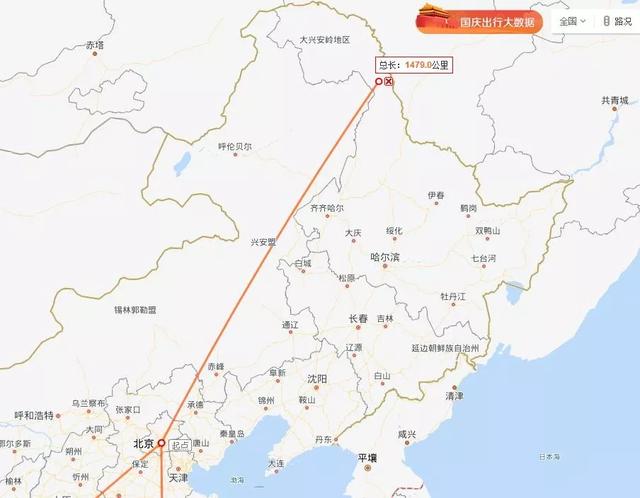 向東北出發(fā),直線距離直接到達(dá)大興安嶺地區(qū),完全穿越東北三省。
