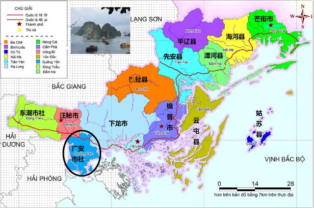 下面地圖表現(xiàn)了越南廣寧省廣安市的位置,它位于紅河三角洲、越東北兩個(gè)大區(qū)過渡區(qū),南側(cè)就是堪稱“越南版天津市”的海防市。