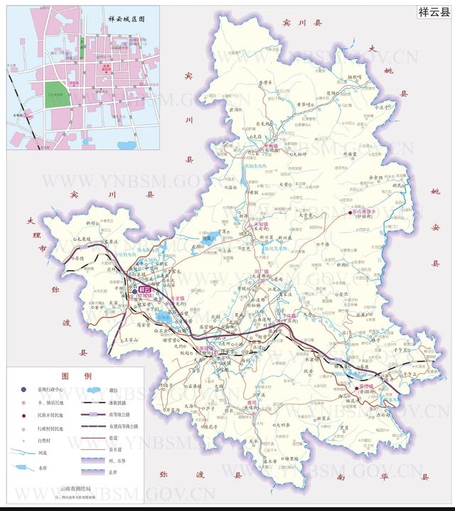 從上邊這個地圖上可以看出來,作為云南大理的下屬縣,整體來看是在云南省的東南部,祥云縣的整體地形非常的復雜,不僅有著高山,還有河谷和盆地。高山是海拔三千二百四十一米的五頂山,還有境內低點海拔一千四百三十三米的高峰嶺大河。云南省云南這個名字來源于歷史上設置在祥云這個地方的云南縣,所以祥云縣有著“彩云之鄉”,和“云南之源”的美稱。