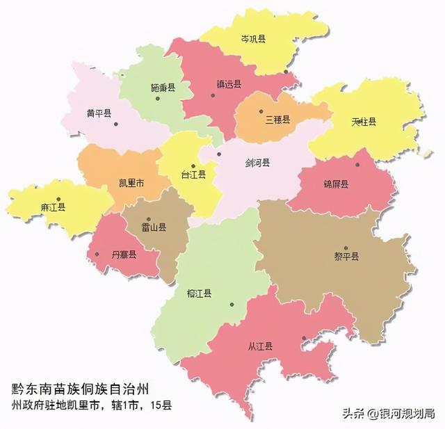 整合之后,剩下凱里、黎平、天柱、榕江、從江、黔東、黃平、丹寨、劍河等9個縣市。當然了,這只是紙上談兵,黔東南之所以有那么多小縣,也是因為黔東南的自然地理環境造成的,往日交通不便,就形成了很多相對獨立的地域,現在來進行整合是不現實的,不過可以依照這個方案進行縣市之間的經濟合作,未嘗不是一件好事。