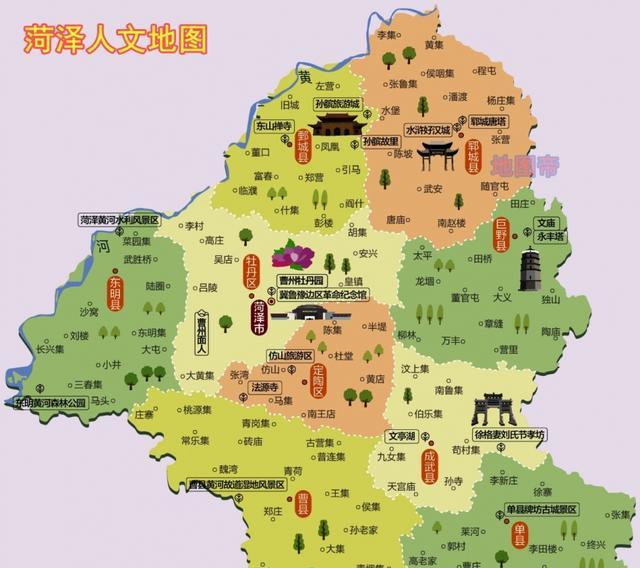 菏澤市,位于山東省的西南部,和河南、安徽、江蘇交界。古時候,這里名稱叫曹州,這個名字大家都比較熟悉,因為周朝在這里的封國曹國。其實,“菏澤”作為行政單元的名字所用的時間并不太久,是清朝雍正皇帝給賜的名。