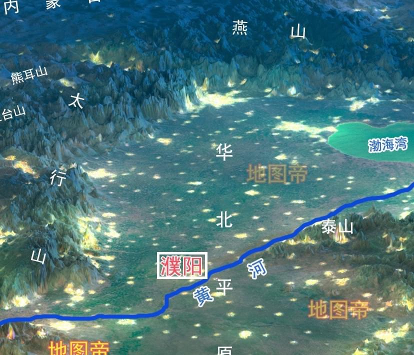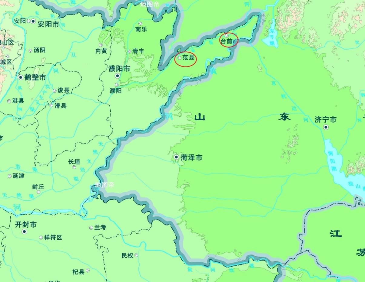 圖-俯瞰臺(tái)前縣,夾在黃河與金堤河之間