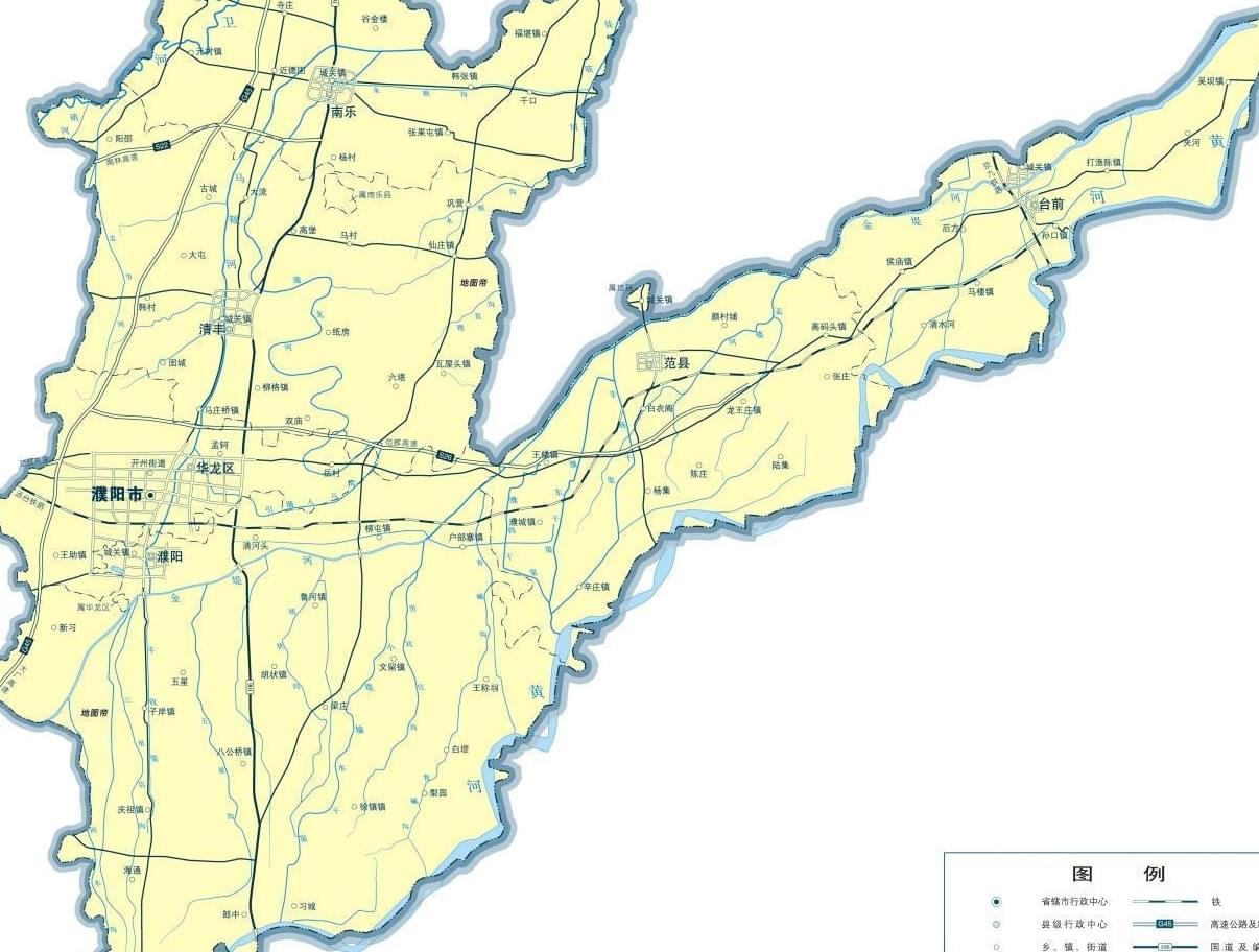 濮陽市,位于河南省東北部,冀、魯、豫三省交界處,按順時(shí)針方向分別與山東省聊城市、泰安市、濟(jì)寧市、菏澤市,河南新鄉(xiāng)市、安陽市,河北邯鄲市相鄰。濮陽之名始于春秋戰(zhàn)國(guó)時(shí)期,因位于濮水北岸而得名,曾為衛(wèi)國(guó)都城。如今濮陽市面積約4188平方公里,下轄1區(qū)5縣:華龍區(qū)、濮陽縣、清豐縣、南樂縣、范縣、臺(tái)前縣。范縣和臺(tái)前縣就是濮陽市踹向山東的那條“腿”。