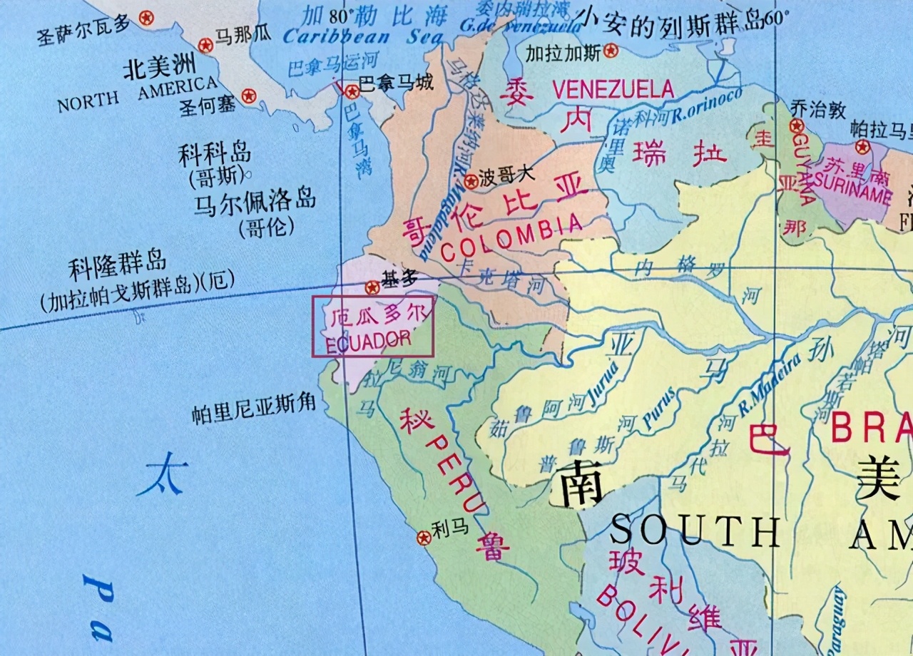 厄瓜多爾共和國,別稱“赤道之國”,也是一個比較著名的香蕉出口國,前年在上海賣水果的時候,進口蕉除了新加坡的,就是厄瓜多爾火山蕉。在南美洲的大陸上,隔著秘魯與智利和玻利維亞相望。首都基多的西部是皮欽查活火山,最近一次的爆發是在一九九九年。全國地勢和我國相反,東高西低,呈三個階梯狀,西部沿海:主要包括平原和山麓地區,大部分處于二百米以下,只有少部分的丘陵和地山,屬熱帶雨林氣候,該西部的最南端逐漸向熱帶草原氣候過渡。中部山地:橫貫南美洲的安第斯山脈在厄瓜多爾境內構成了東、西科迪勒拉山脈,兩山之間形成了高原,地勢也是北高南低。值得一提的是安第斯山脈的形成是南極洲板塊和美洲板塊碰撞形成的,而不是太平洋板塊。因為是建在沖擊板塊上面,地形復雜,多溝谷,錯綜復雜。東部地區:因為是亞馬遜河流的發源地,因此海拔較高,積雪融化形成的河水湍急,自海拔一千兩百至二百五十米的山麓地帶沖擊到二百五十米的地區,形成平原,這個地方河面開闊,水流平緩,多河曲,參考我國的黃土高原上的黃河九曲。