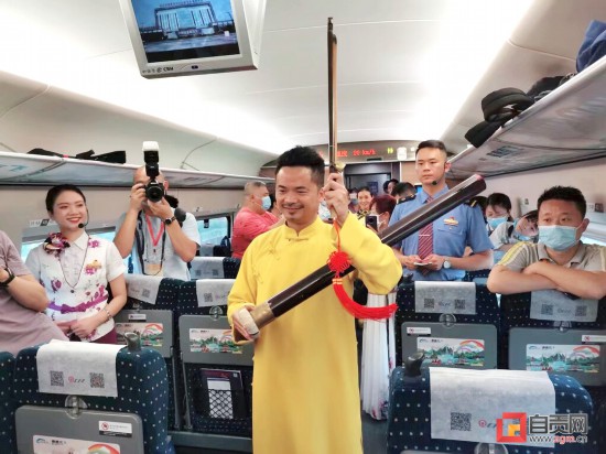 瀘州-成都高鐵首發(fā)列車上自貢曲藝表演
