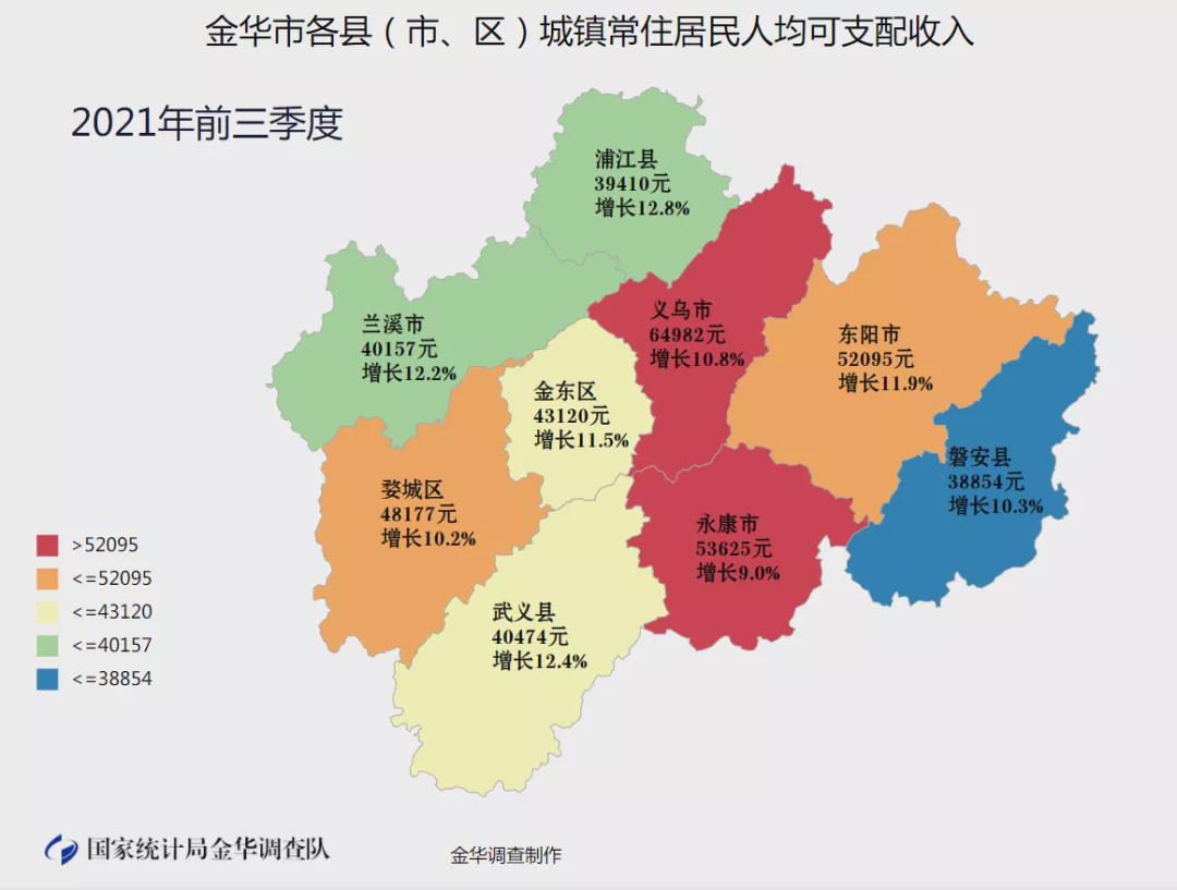 2021年前三季度“金華居民收入地圖”來啦!家鄉收入水平如何