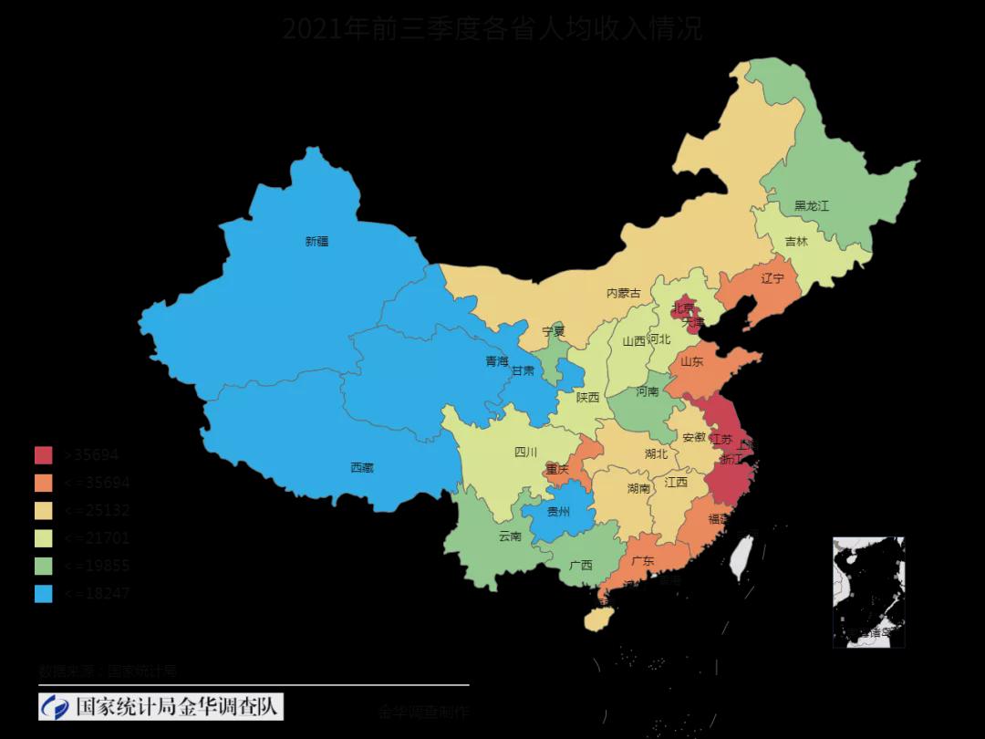 2021年前三季度,“金華居民收入彩色地圖”新鮮出爐,你那里的收入處于什么水平?快來看看吧~