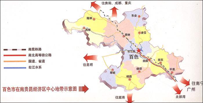 百色市地處貴州省、云南省、廣西的中心位置,地理位置非常重要。