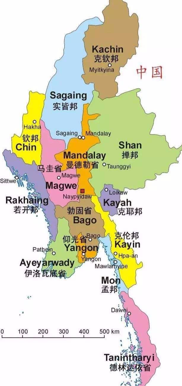 緬甸一共下轄7個省、7個邦和兩個中央直轄市,其中省是緬甸主體民足緬族的居住地,邦為少數民族居住地。類似我國的少數民族自治州。而緬北就是指以馬圭為分界點以北的區域。