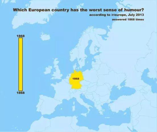 四,歐洲最沒有幽默感的國家投票 一共1868人投票,全部投給了德國。