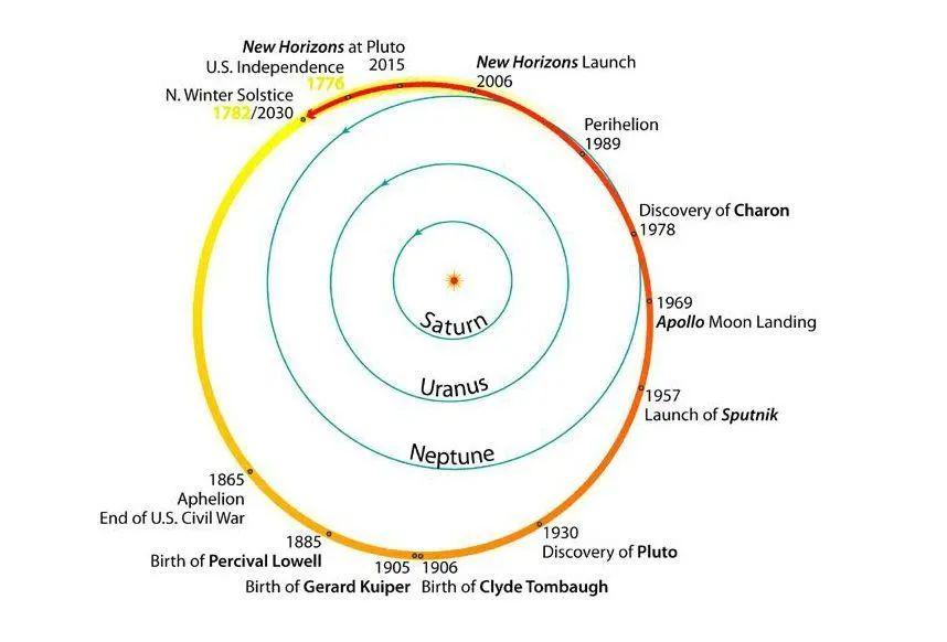 以往美國的所有歷史,都發生在冥王星的一個公轉周期內(247.94 年),美國歷史246年。