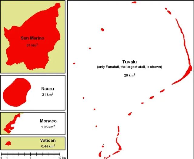世界上最小的5個國家放在一起比較,從小到大分別是梵蒂岡,摩納哥,瑙魯,圖瓦盧,圣馬力諾。雖然都很小,但有趣的是,這五個最小的國家中有兩個國家曾經舉辦過F1…
