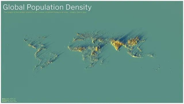 全球人口密度圖,加拿大和澳大利亞這兩個大家伙,消失了…