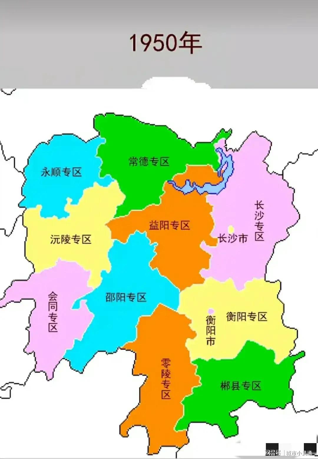 這是1950年湖南省行政區劃地圖,全省共劃分成10個專區,感覺這樣的劃分比現在要合理很多。其中長沙直接成了沿江城市,這將會促進長沙的發展,同時50年的地圖很好的規避了目前懷化、益陽城市管轄區域狹長的問題,讓每個地區面積基本相當。
