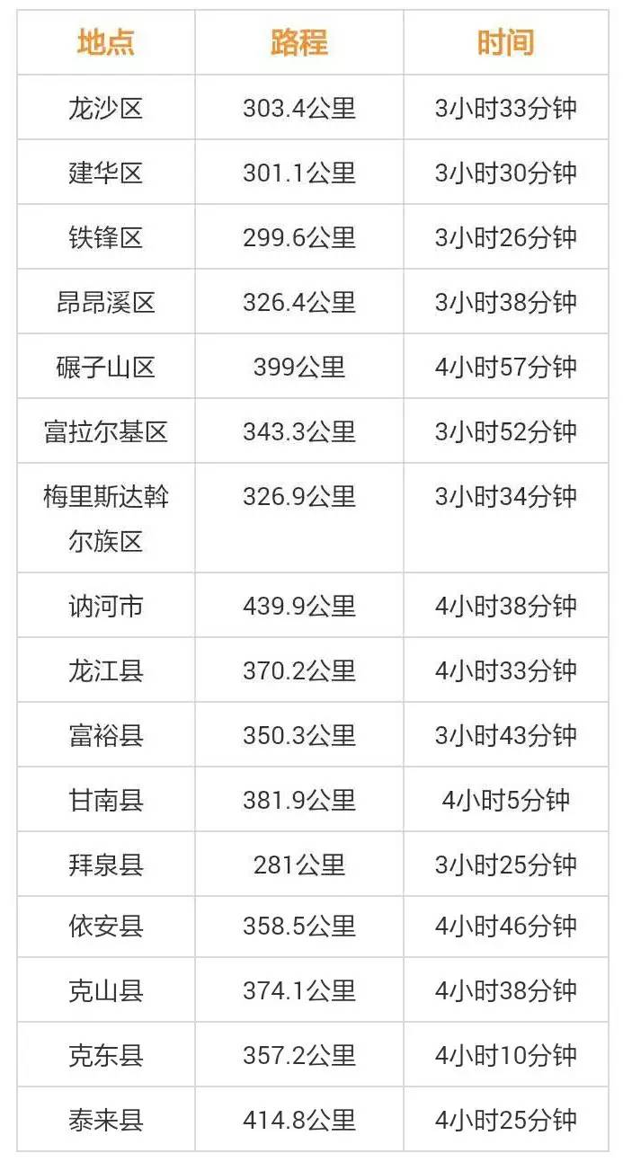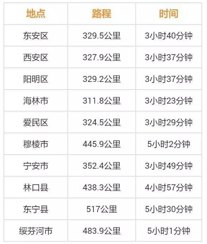 哈爾濱到黑龍江各市區縣公里里程及自駕時間表,趕緊收藏!!