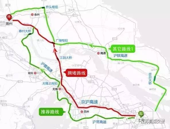 【其他路線】:滬東北地區:從崇啟大橋過江,在廣陵樞紐處轉S29鹽靖高速,往鹽城、連云港方向,或在橋頭樞紐處轉S28啟揚高速,往揚州方向。