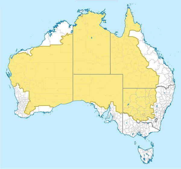 13. 2%的澳大利亞人口住在圖中的黃色區域。