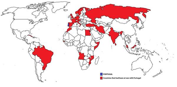 27.紅色的區域代表世界上與葡萄牙打過戰的國家。