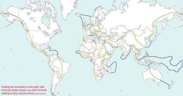 8.想一條路線把世界上所有的國家都走遍,下圖是你可以考慮的路線。