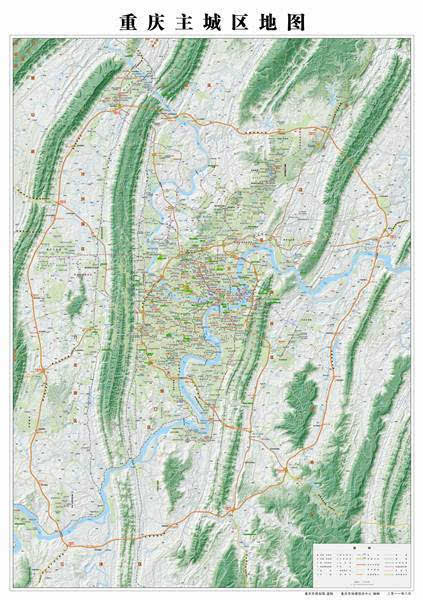 新版《重慶城區及周邊地圖》采用橫版形狀,在內容上有四大創新:一是首次將兩江新區的范圍完全納入重慶主城區圖幅范圍內;二是對重慶主城區及周邊長壽、江津、璧山甚至銅梁等區的城區都進行了涵蓋;三是對重慶主城區及周邊最具特色的平行嶺谷(包括主城四山)和長江、嘉陵江等都進行了突出表現,反映了山、水、城的關系;四是針對企事業單位和政府機關等重要地理信息密集的主城核心區域,也單獨劃出進行放大和內容完善。此外,新圖還對各種規劃及在建的鐵路、高速公路等交通設施進行了呈現。