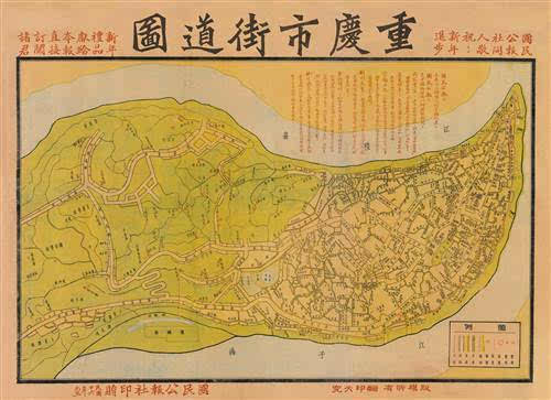 1937年《重慶市街道圖》,重慶已拓展到兩路口、上清寺一帶。