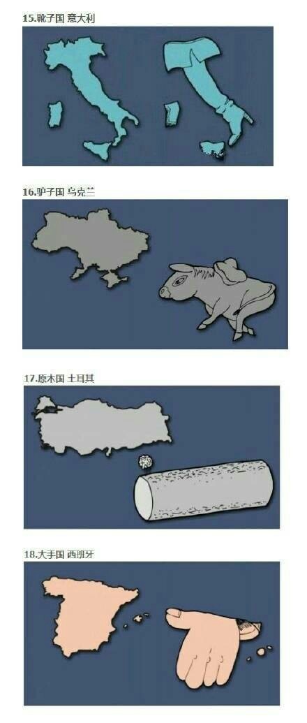 從世界地圖上來看,歐洲是個非常有趣的地方,在這不是很大面積的土地上擠著大大小小的好多國家,讓人不看字兒完全對應不上那片國土是哪個國家。而一些大神發現了各國地圖中潛藏著的秘密完美解決了這個問題,那就是按照國土形狀來記國家。