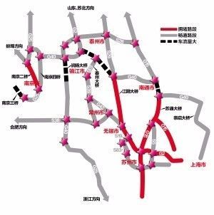 2、G2京滬高速盡量避開揚(yáng)州段,北往南可選擇S237省道或S18鹽淮高速轉(zhuǎn)S29鹽靖高速繞行,南往北的車輛可選擇S237省道或由S28啟揚(yáng)高速進(jìn)入S231省道轉(zhuǎn)S18鹽淮高速繞行。